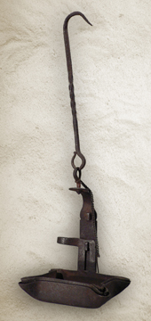 Diese kleinen, aus Blech oder geschmiedetem Eisen hergestellten Talg- oder Öllampen waren im 17. bis 19. Jahrhundert sehr beliebt.